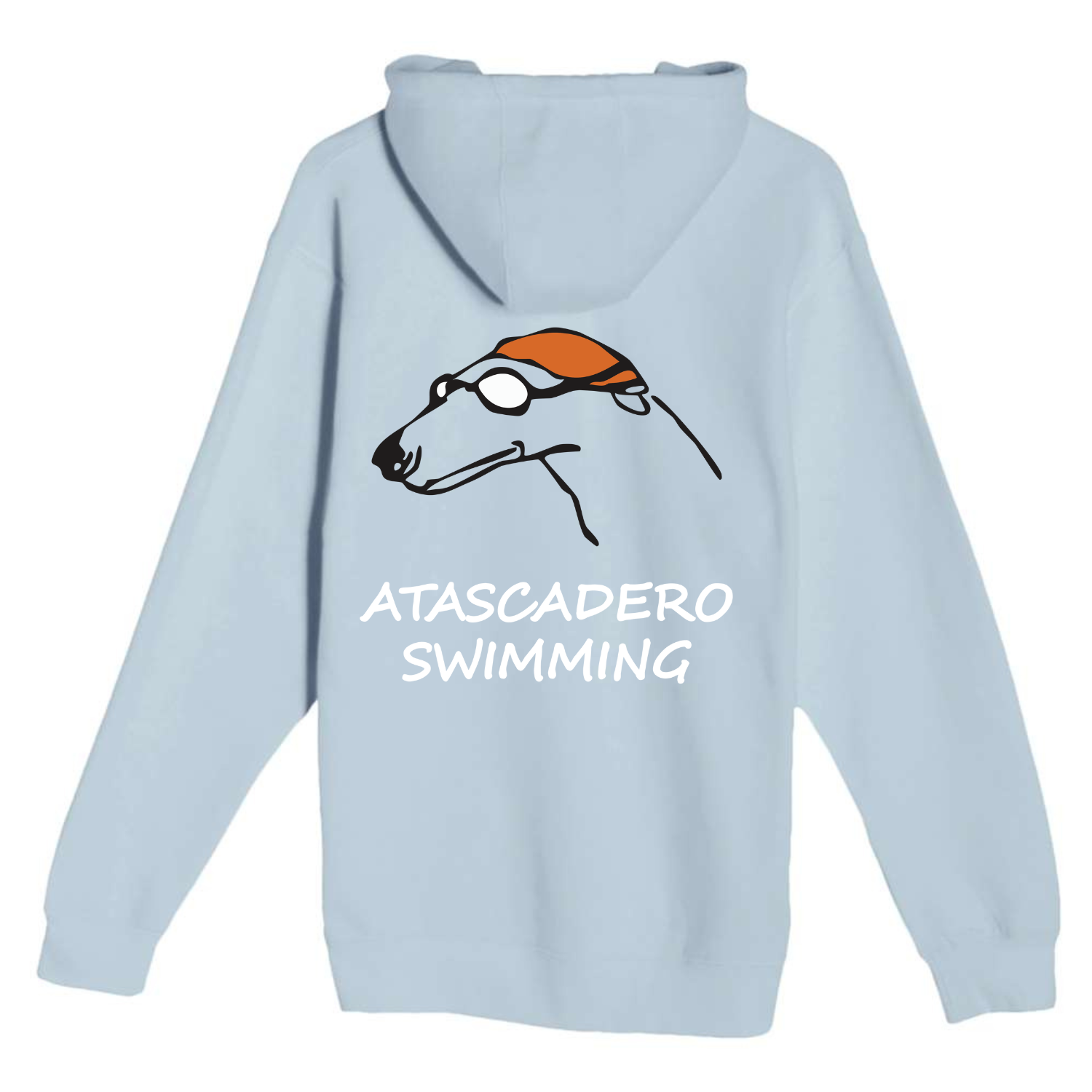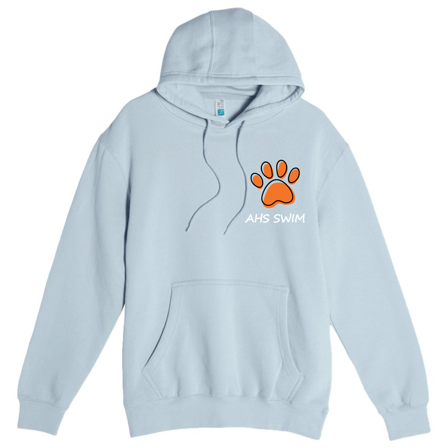 Dive into team spirit with the AHS Swimming Race Hound Hoodie in Blue Mist. This cozy pullover celebrates your aquatic crew with pride, featuring a playful race hound design that'll make a splash both in and out of the pool. Perfect for post-practice warmups, casual hangouts, or showing off your swimming squad loyalty. Soft, comfortable, and ready to cheer on your teammates in style.